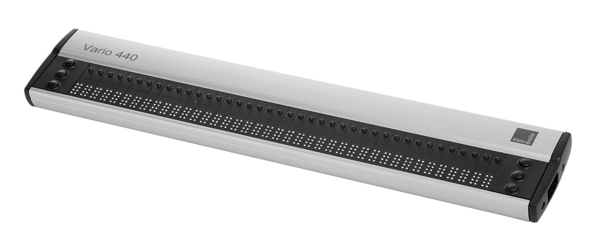 Die Vario 4 - Serie beinhaltet die wohl kompaktesten Braillezeilen. Sie sind sehr formschön und durch das stabile Aluminiumgehäuse auch sehr robust.